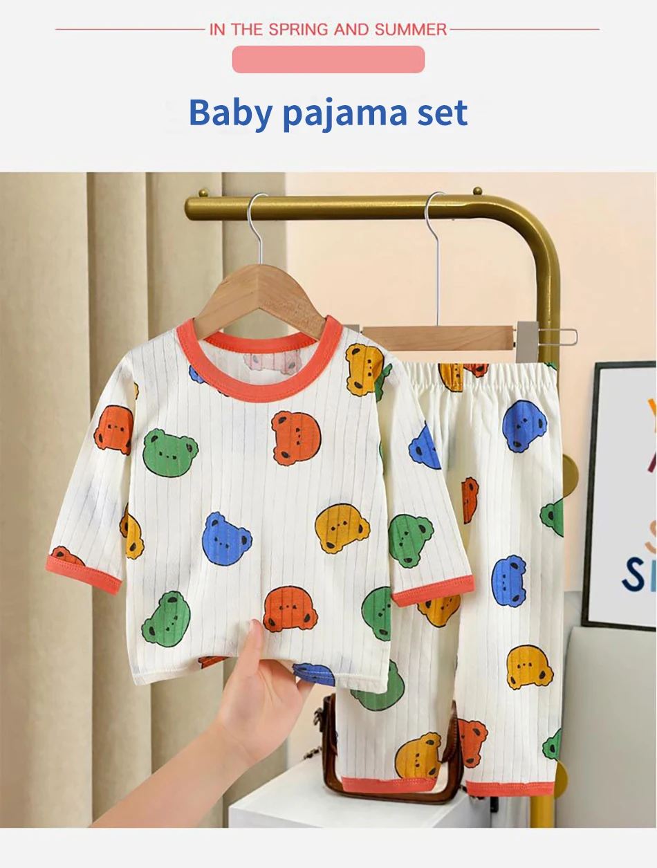 الاسم: طقم بيجامات صيفي لطيف ومريح للأطفال بأكمام طويلة وملابس نوم قطنية وغرف مكيفة