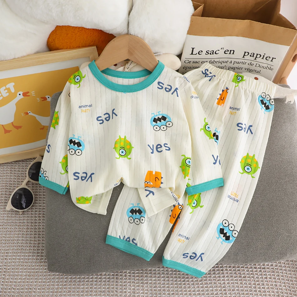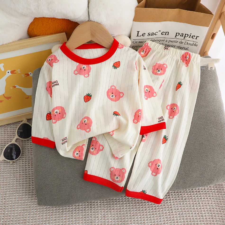 طقم بيجامات صيفي لطيف ومريح للأطفال بأكمام طويلة وملابس نوم قطنية وغرف مكيفة