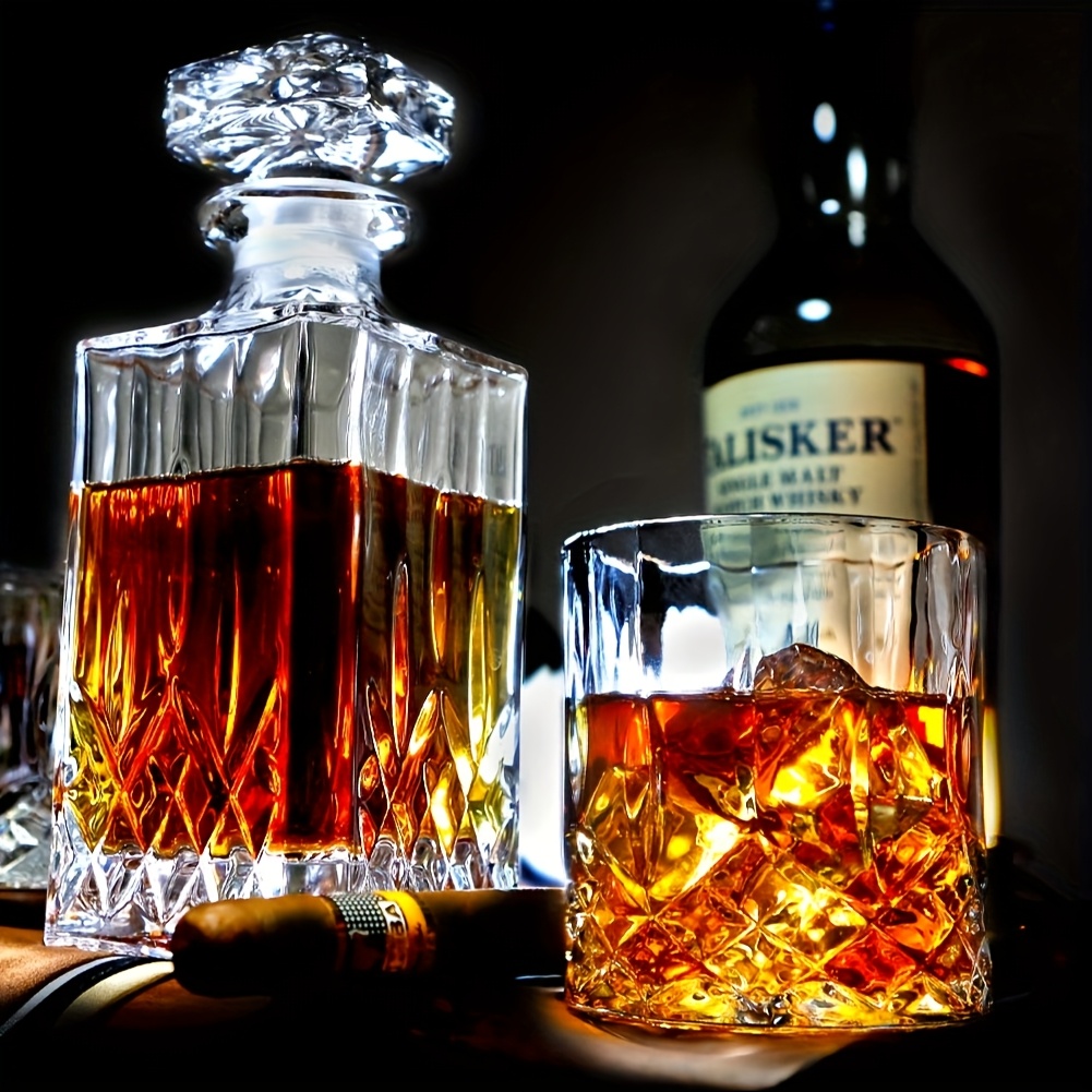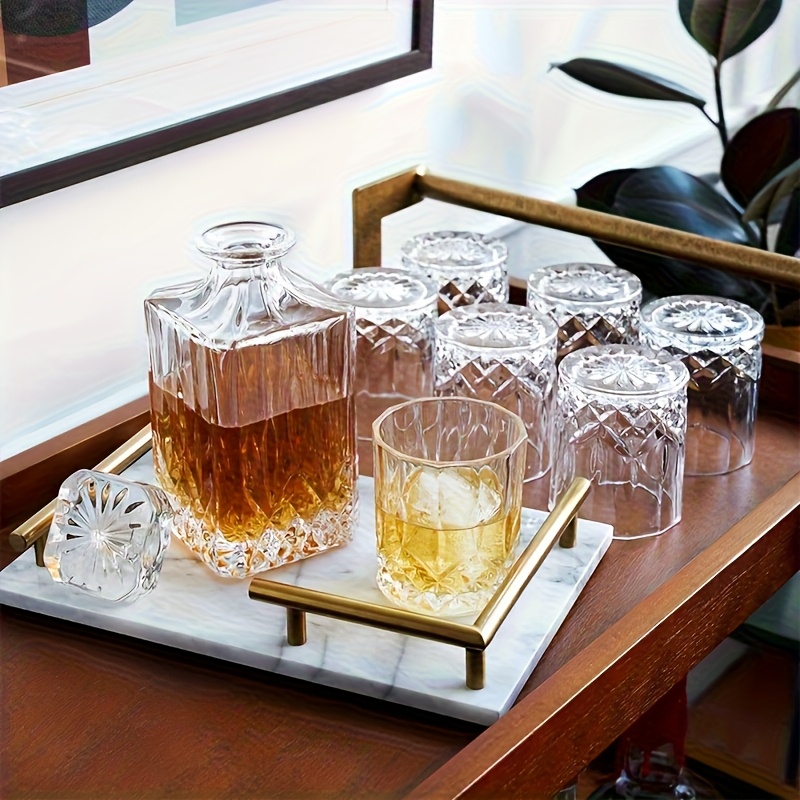 MAMSHIB 3pcs Whiskey Decanter Set 7pcs - Elegant Glass Spirits Carafe with Pour Spout& Stopper - Premium Roostertail& Liquor Decanting Kit for Bourbon, Scotch, Rum - Ultimate Barware Gift Set for Home Bars, Parties, Holidays&