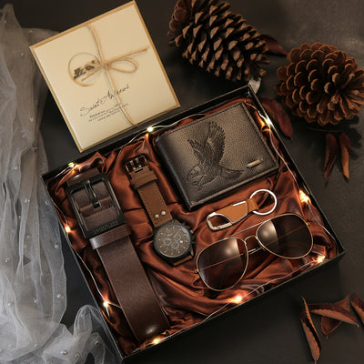 7pcs Business Casual Stylish Men's Watch Set + Fashion Glasses + Wallet + Belt, etc., Perfect Gift for Father's Day Teacher's Day Thanksgiving