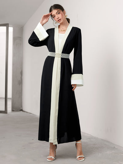 Cozy Comfort, Elegant Black and Cream Long Robe with Ruffle Sleeves - Polyester, Machine Washable, Casual Style for Women - Perfect for Spring/Summer/Fall