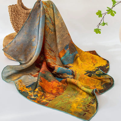 وشاح حريري مربع فاخر مطبوع باللون الأصفر بتصميم ريترو جديد لعام 2025 مصنوع من حرير التوت بنسبة 100% من فور سيزونز