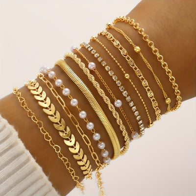 11pcs/12pcs Creative Minimalist Heart Twist Chain Bracelet Set, Stainless Steel with Artificial Crystal Accents, Versatile for Daily Wear & Parties, Valentine'S Day Gift, All-Season Accessory, Party Accessories|Minimalist Bra