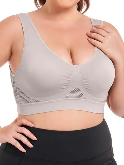 14pcs EssElegance Plus size High Support Wire-Free Sports Bras with Padded & Mesh Panels, Breathable Stretch Fit for Yoga Running Training
