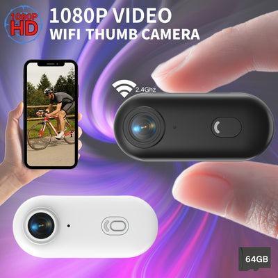 1080P Thumb Action Camera, WIFI Camera with Magnetic Buckle, Sports Camera Connected through Mobile APP, Portable Body Camera, Wearable Portable Video Recorder with 64GB TF Memory Card, Travel Sports Adventure Portable Wearab