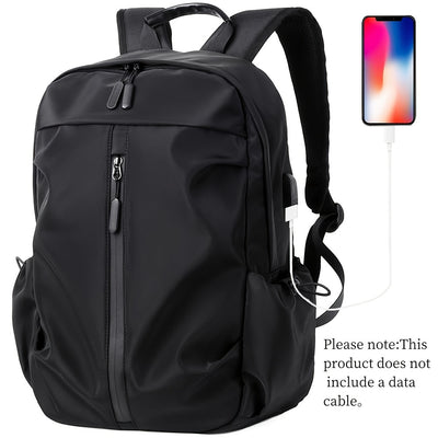 حقيبة ظهر خفيفة الوزن للجنسين، سعة 20 لترًا، مُحسّنة، مزودة بحجرة للكمبيوتر المحمول ومنفذ شحن USB - أحزمة كتف قابلة للتعديل، مصنوعة من البوليستر للسفر والتنقل والمدرسة والأعمال - لون أسود كربوني، حقيبة للتنقل | تصميم بسيط | تصميم أملس