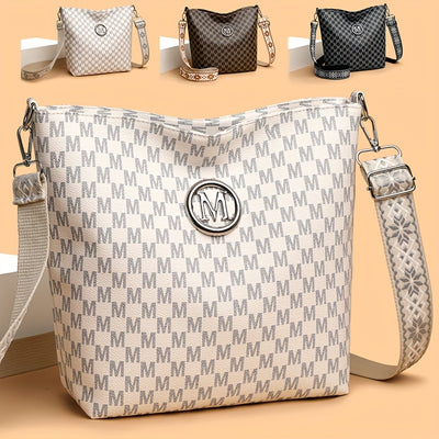Perfect Lily Women’s Fashion Tote Bag with Bohemian Wide Strap – Stylish Solid Color Letter Print Shoulder Bag, Large Capacity for Daily Use, Commuting, and Casual Outings – Available in Multiple Colors (White, Beige, B