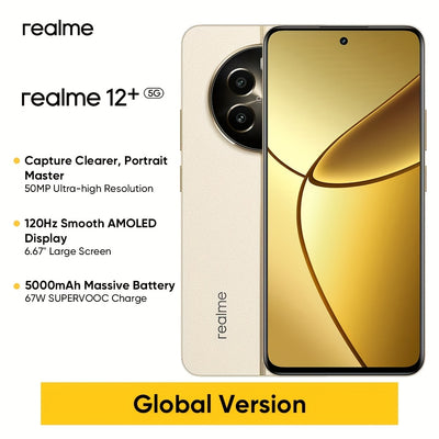 Realme 12+ 5G Smartphone | 8+256GB | 12+512GB | 6.67-inch AMOLED 120Hz | 64MP Camera | 5000mAh Battery | Dual SIM Card Android Phone, Global Version, Smartphone for Android Phones, Realme 12 Plus, Smart, Virtual, Default, Off