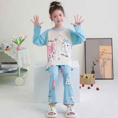 طقم بيجامات سانريو للبنات، ملابس نوم للأطفال، بيجامات بأكمام طويلة، ملابس نوم للأطفال، ناعمة ومريحة