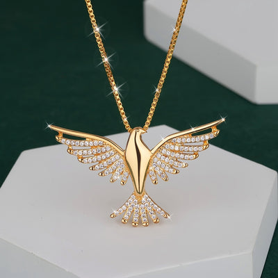 1pc Elegant 18K Golden Plated Eagle Pendant Necklace, Copper Base with 5A Zirconia Inlay, Tribal Hip Hop Style, Daily Wear Clavicle Chain for Women