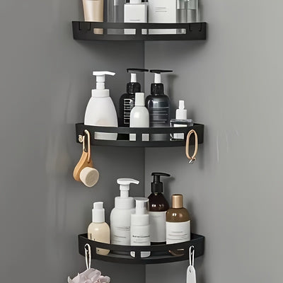 1pc Heavy-Duty No-Drill Bathroom Corner Shelf - Space-Saving Corner Organizer with Damage-Free Installation, Waterproof Bathroom & Kitchen Storage Rack, Holds Shower Gel, Toiletries, Cosmetics - Ideal for Small Bathrooms, Apa