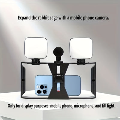 1pc Handheld Phone Stabilizer with Rotating Gimbal, Smartphone Micro Stand and Fill Light for Live Streaming/Photography Recording. Features Three Cold Shoe Mounts & Multiple 1/'10.16cm Extensions - Compatible w Apple Huawei