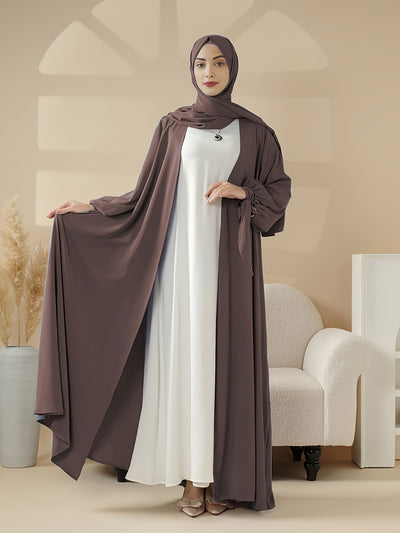 1pc Elegant Abaya with Lantern Sleeves and Belt - Long Flowing Design, Solid Color, Non-Stretch Fabric, Perfect for All Seasons, Includes Belt but Not Headscarf, Versatile for Casual or Formal Wear, Versatile Abaya | Flowing