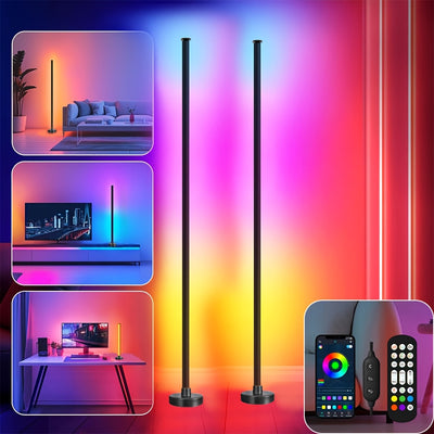 2 LED Floor Lamp, Smart RGB with APP and Remote Control, Color Changing Mood Light, Standing Lamp, Picks up Music Sync, Easy to Install, Suitable for Living Room, Bedroom, Office, Party, Lighting and Home Decoration, Lamps Fo