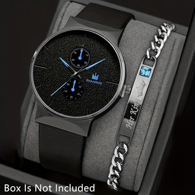 2pcs/set, Fashion Men's Simple Business Quartz Watch & Bracelet Set, Ideal Choice For Gifts
