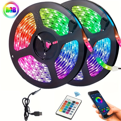 شريط إضاءة ليد 5050 RGB مع مزامنة الموسيقى وتغيير الألوان، تطبيق ذكي للتحكم عن بعد، شريط إضاءة ليد لغرفة النوم والمنزل والحفلات والمهرجانات. 1 متر/3 متر/5 متر/10 متر/20 متر/50 متر، 24 مفتاحًا/44 مفتاحًا