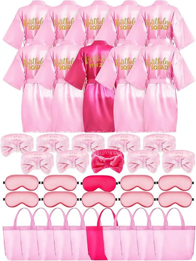 40 قطعة من لوازم حفلات السبا للفتيات، 10 رداء أميرة لحفلات أعياد الميلاد، 10 حقائب حمل، 10 عصابات رأس، 10 أقنعة سبا لأعياد الميلاد
