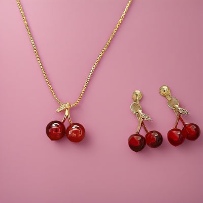 3pcs Set Red Cherry Jewelry Set for - Cherry Motif Necklace & Earrings, Glossy Fruit Pendant, Casual Attire & Party Accessories, Gift for Girls (No Plating, Durable Color) - Cherry-Themed Jewelry Collection, for Teenager