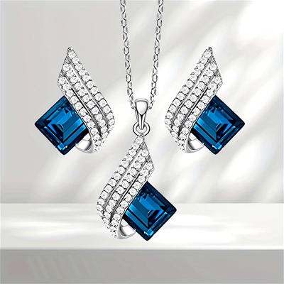 3pcs Elegant Teardrop Blue Jewelry Set Silvery Inlaid Synthetic Synthetic Zirconia Pendant Necklace Dangle Earrings Sets for Lady Girls Banquet Prom Wear