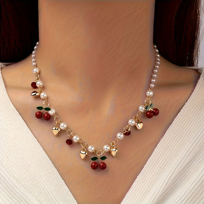 2pcs Set of Exquisite and Elegant Cute Cherry Heart Bracelet and Necklace Combo