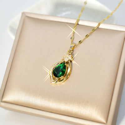 Stainless Steel Necklace with Green Water Drop Pendant - Elegant Geometric Design, Perfect for Daily Wear or Gifting, Ideal for Boys and Girls, Everyday Jewelry|Modern Minimalist|Durable Jewelry, For Teenager