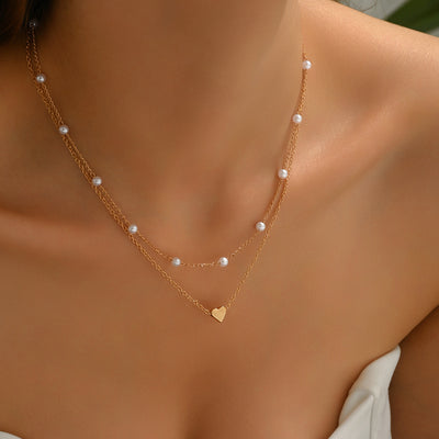 1pc Summer Fresh Sweet Heart-Shaped Faux Imitation Pearl Pendant Necklace, Unique Faux Imitation Pearl Heart Bead Chain, Holiday Gift, Exquisite Present for Friends
