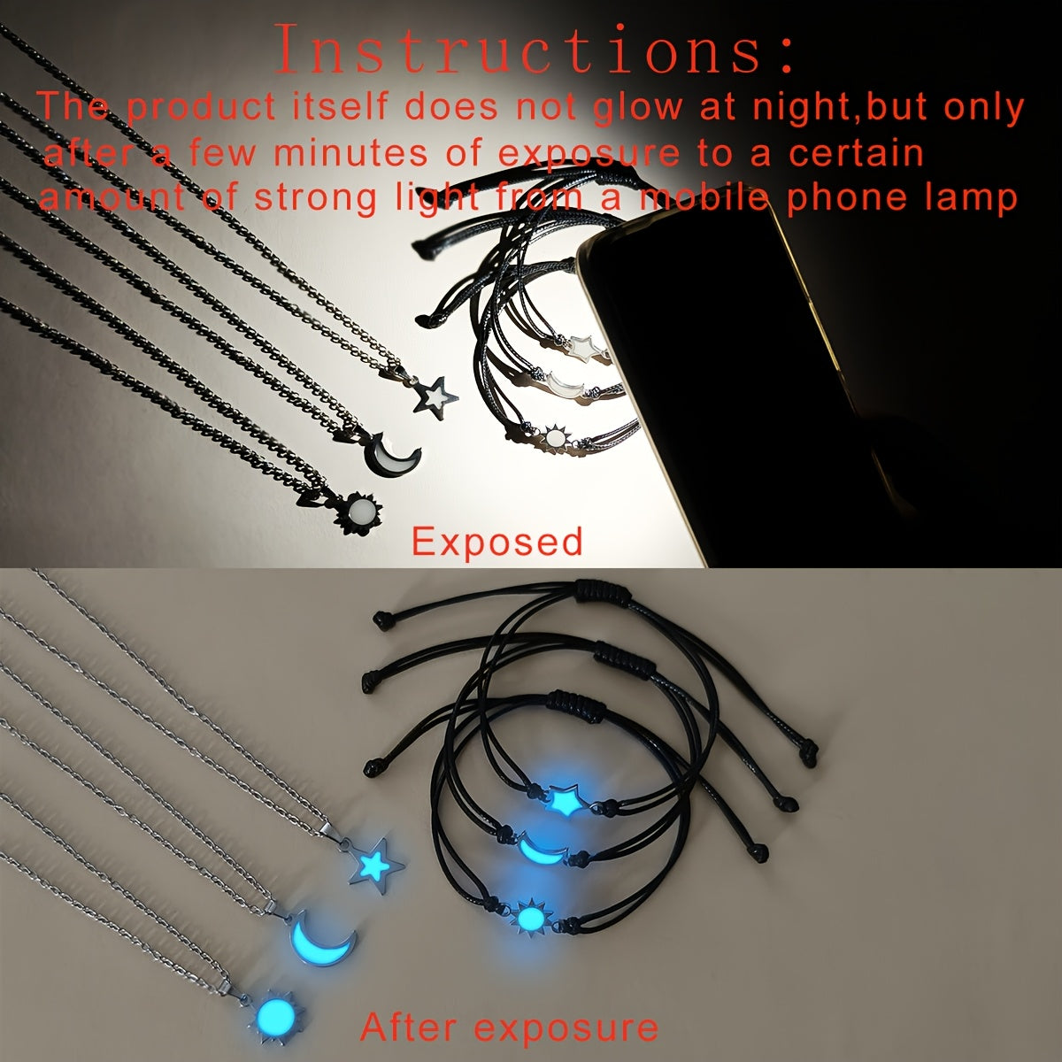 6 pieces/set of luminous Sun, Moon and star necklaces, hand-woven and fashionable handstring set