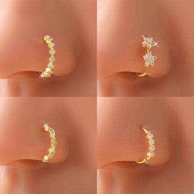 4pcs set of Women's fashionable snowflakes, cherry blossoms, tulips, inlaid Synthetic Zirconia U-shaped nose clip set, no perforation, adjustable retro elegant style, simple design, fashionable and versatile. Thanksgiving gif
