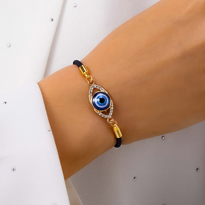 Vintage Elegant Evil Eye Bracelet - Rhinestone Encrusted, Alloy, Adjustable Drawstring, Turkish Style Charm, Daily & Gift Occasion Accessory