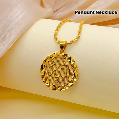 Islamic Quran Allah Pendant Necklace, 18K Golden Plated Stainless Steel, Arabic Calligraphy, Tribal Arabian Style, Daily & Festival Wear, Ramadan Jewelry for Men & Women, N1208