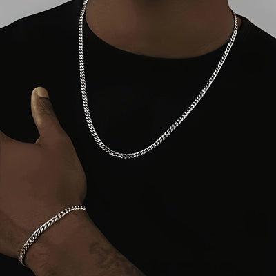 2pcs Hip Hop Stainless Steel Chain, Punk Fashion Necklace Bracelet Set for Men, Streetwear Style, Urban Fashion, Sturdy Bracelet, Men's Necklace Set, Men's Fashion, Punk Enthusiasts