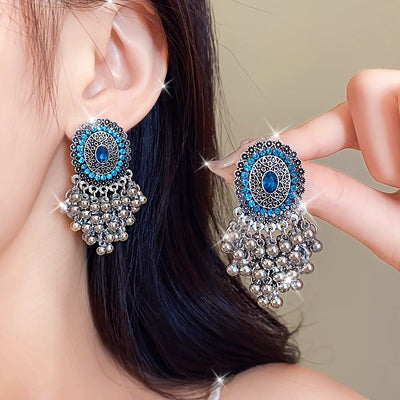 Elegant Court-Style Rhinestone Tassel Earrings - Stainless Steel Posts, Alloy with Sparkling Gems for Parties & Banquets