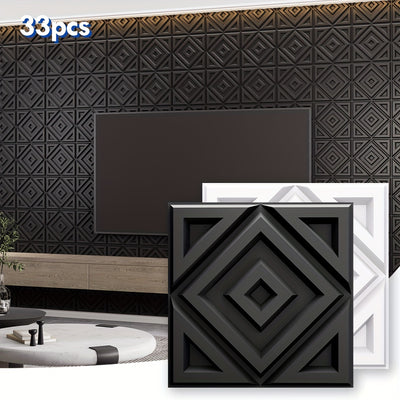 33pcs 3D Diamond Illusion Wall Panels, PVC Material, 29.97cm x 29.97cm, Black & White Geometric Design for Modern Living Room, Bedroom, Kitchen, and TV Wall Accents, Room Decor