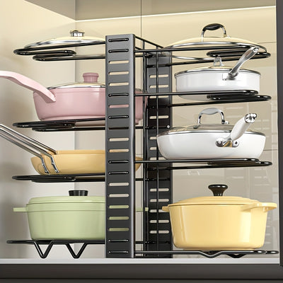 8-tier Pots and Pans Organizer for Cabinet Upgraded Pots and Pans Organizer Rack for Kitchen Storage Larger Size Pot Lids Organizer rack with 8 Tiers & 3 DIY Methods