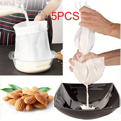 5pcs Premium Food Grade Nut Milk Bags - Reusable Fine Mesh Filter Bags for Almond, Soy, and Cold Brew Coffee - Durable Plastic Kitchen Accessories for Smooth and Efficient Milk Filtration, Coffee Filtration Bags | Transparent