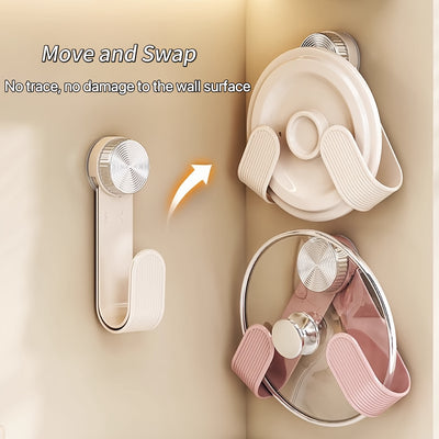 2pcs Rotating Suction Cup Pot Lid Holder, Wall-Mount No-Drill Organizer with Dual Hooks for Kitchen Utensils, ABS Material, Space-Saving Storage Rack for Spatulas and Ladles, Kitchen Storage Solution | Minimalist Organizer |