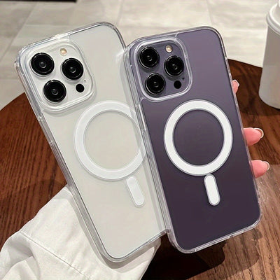 Magnetic Transparent Mobile Phone Case, Supports Wireless Charging, Durable, Classic and Fashionable - Suitable for iPhone 16/15/14/13/12/11 Promax - Mobile Phone Protection Case