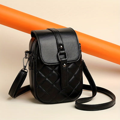Mini Argyle Quilted Crossbody Bag, Fashion Flap Mobile Phone Bag, Women's Multi Layer Shoulder Purse