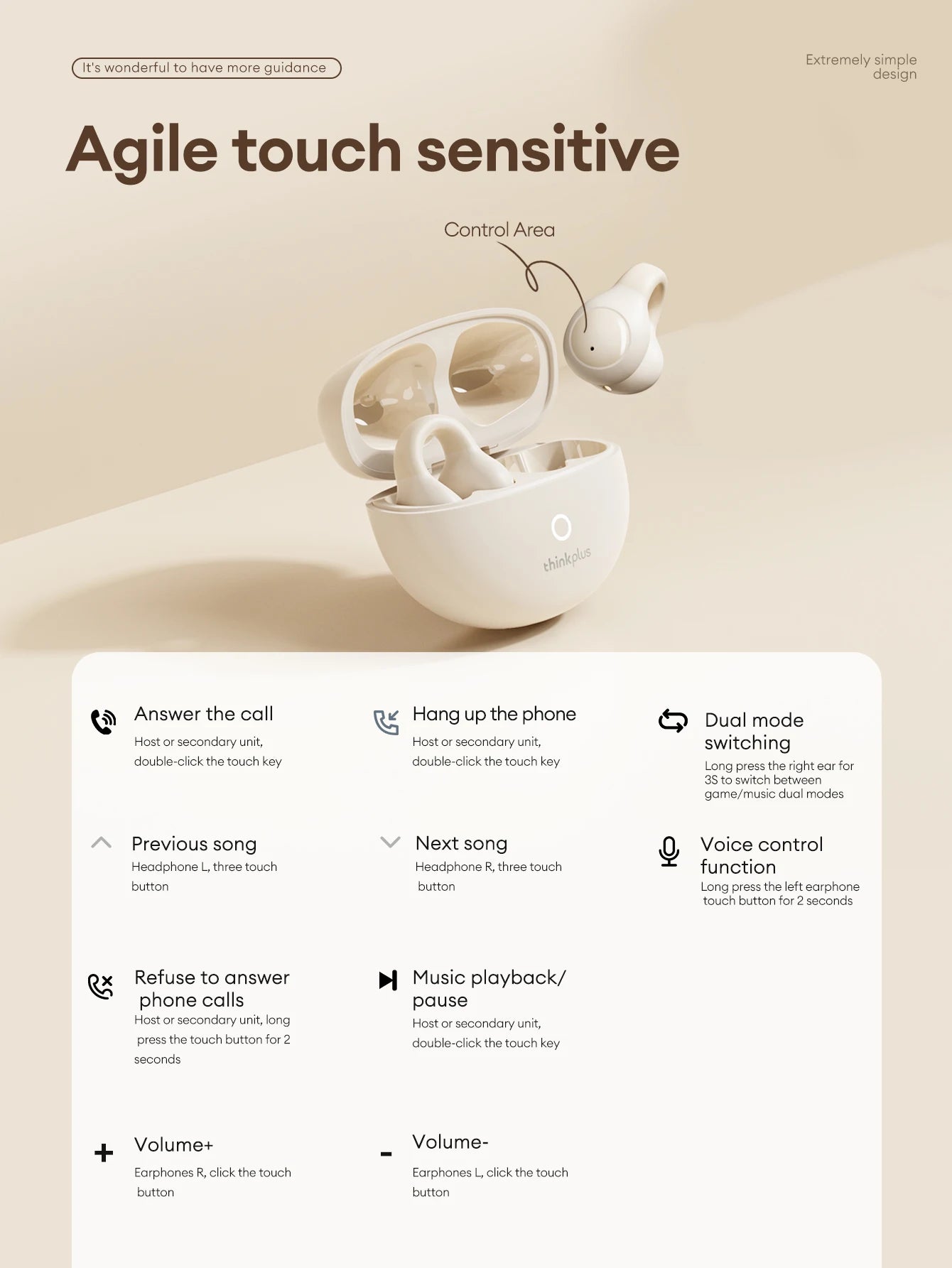 1. [راحة خفيفة الوزن] : يزن كل سماعة أذن مثل مكعب السكر، مما يوفر تجربة استماع مريحة ومنعشة مع تقنية رقعة الأذن المريحة.