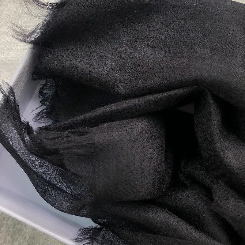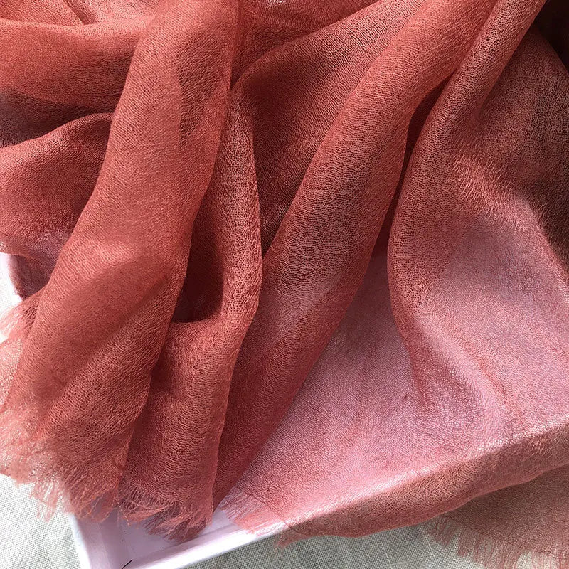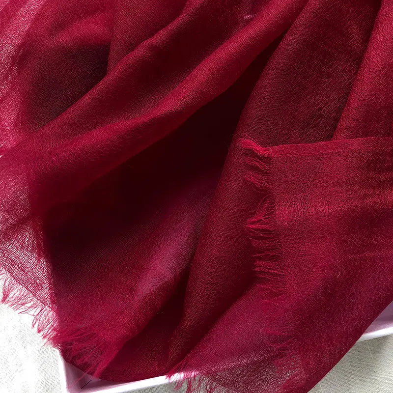 لأن غزل الكشمير رقيق وخفيف للغاية، يُعدّ مقاس 100*220 سم شالاً كبيراً. يبلغ حجمه قبضة يد واحدة فقط. يتميز بخفة وزنه ورقته ونعومته ودافئته، ويسهل تمريره عبر الحلقة. يحظى بشعبية كبيرة بين الطبقة الراقية في الداخل والخارج.