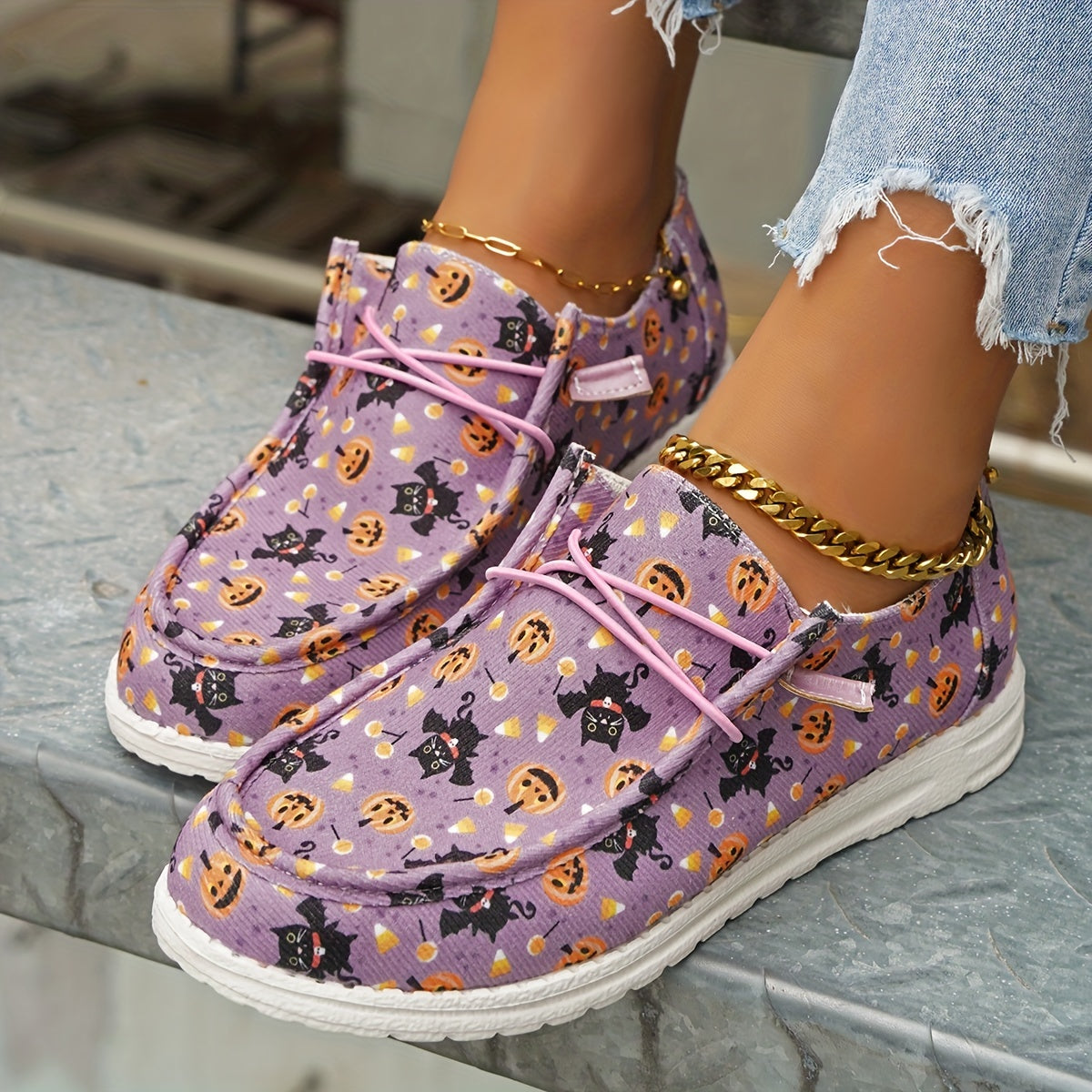 · Fun and festive design featuring pumpkin and cat print