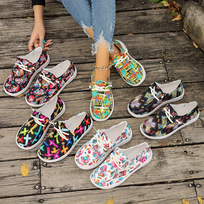 Women's Easter Themed Canvas Shoes, Casual Lace Up Outdoor Shoes, Lightweight Low Top Shoes