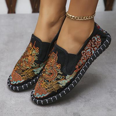 Women's Loong Embroidered Flat Shoes, Casual Slip On Outdoor Shoes, Comfortable Low Top Shoes