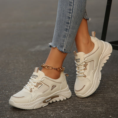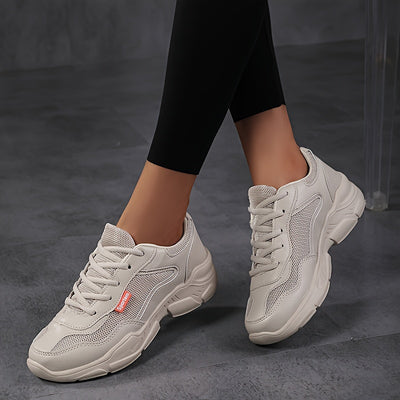 Women's Breathable Mesh Platform Sneakers, Casual Lace Up Outdoor Shoes, Comfortable Low Top Sport Shoes