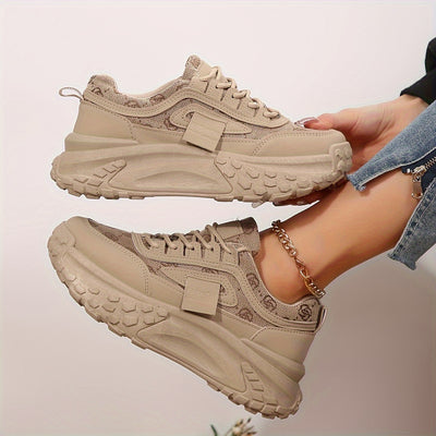 Women's Platform Sneakers, Casual Lace Up Outdoor Shoes, Comfortable Side Zipper Design Low Top Shoes