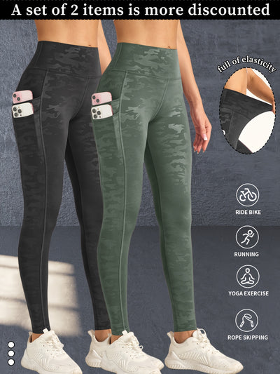 3pcs High-Waist Tummy Control Yoga Leggings with Pocket - Butt Lifting, Stretchy Sports Pants in Vibrant & Subdued Print for Women