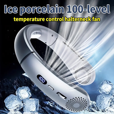 JKUOO Neck Fan, 100-Speed Adjustable Wind, Type-C Fast Charging, LED Display and Physical Cooling Pad - Lightweight Portable, Suitable for Sports, Travel, Outdoor Activities, Summer Essential, Rechargeable Portable Neck Fan