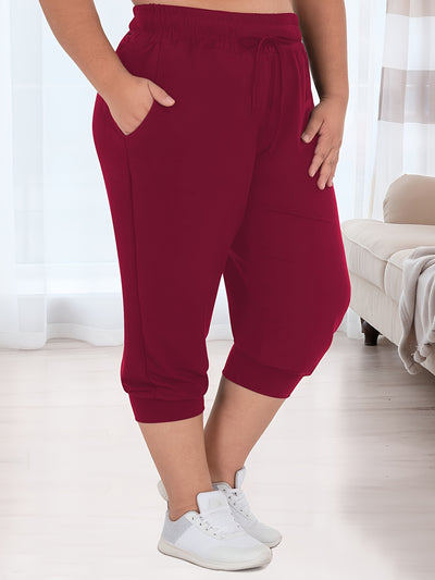 Loose Fit, Plus Size Jogger Pants with Drawstring Waist and Side Pockets - High Stretch, Solid Color, Elastic Cuffs - Ideal for Spring, Summer, Fall Sports Activities, Relaxed Fit Pants | Elastic Cuff Joggers | Drawstring Wai