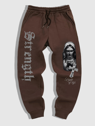 Men'S Casual Sports Joggers with Gothic Print of The Virgin Mary from The Renaissance.