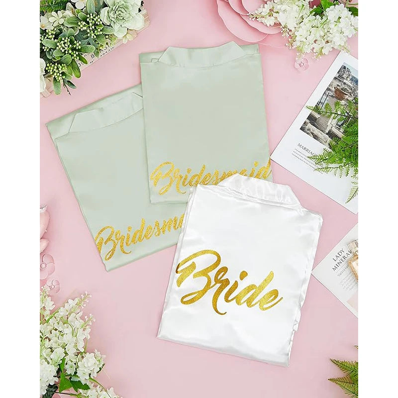 10 قطع من رداء كيمونو العروس المطرز من الساتان لحفلات الزفاف وحفلات الاستحمام للعروس